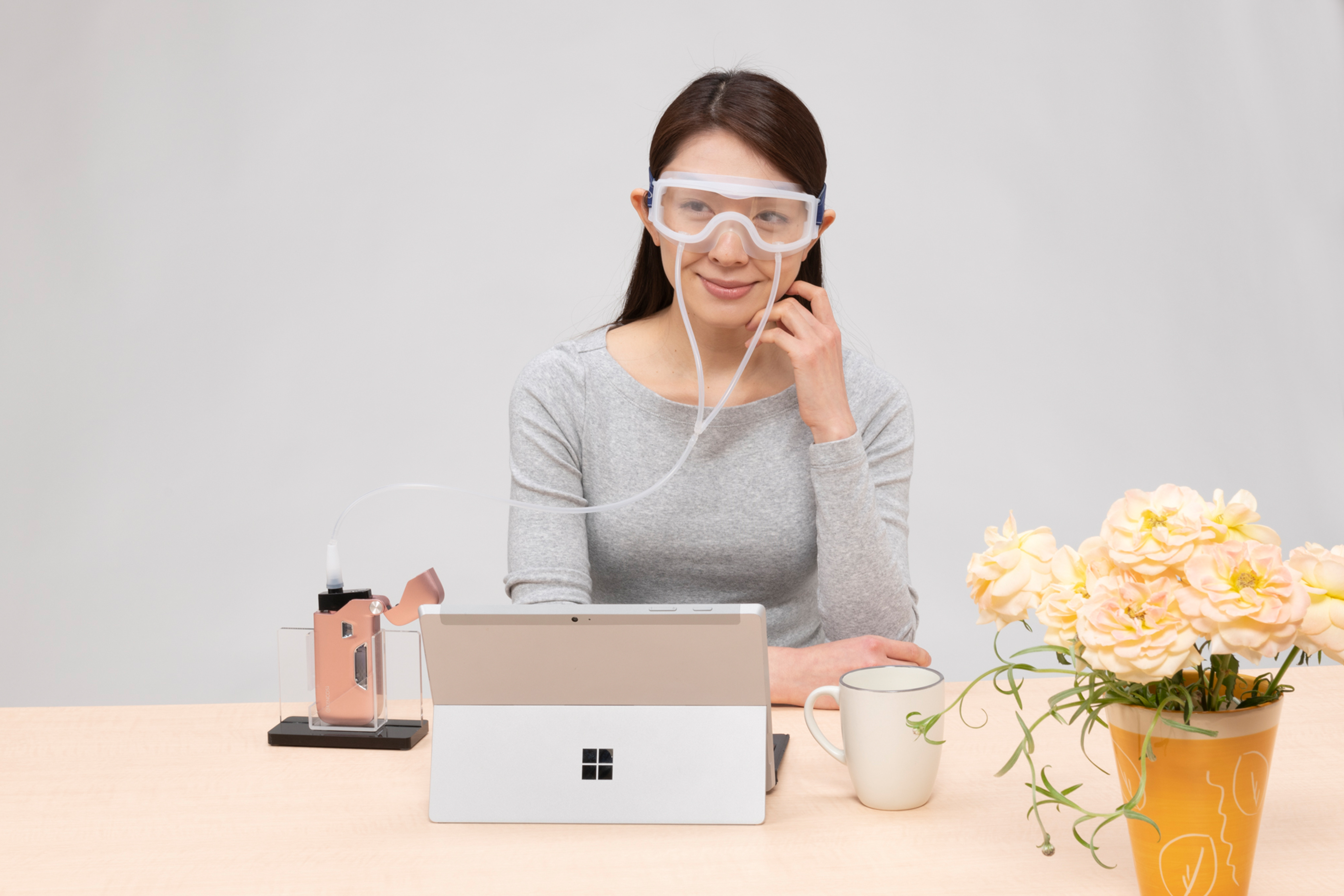 ケンコスの持つポータブル性と、水素浴ゴーグルとの組み合わせにより、場所にしばられることなくいつでも目を労ることが可能になりました。