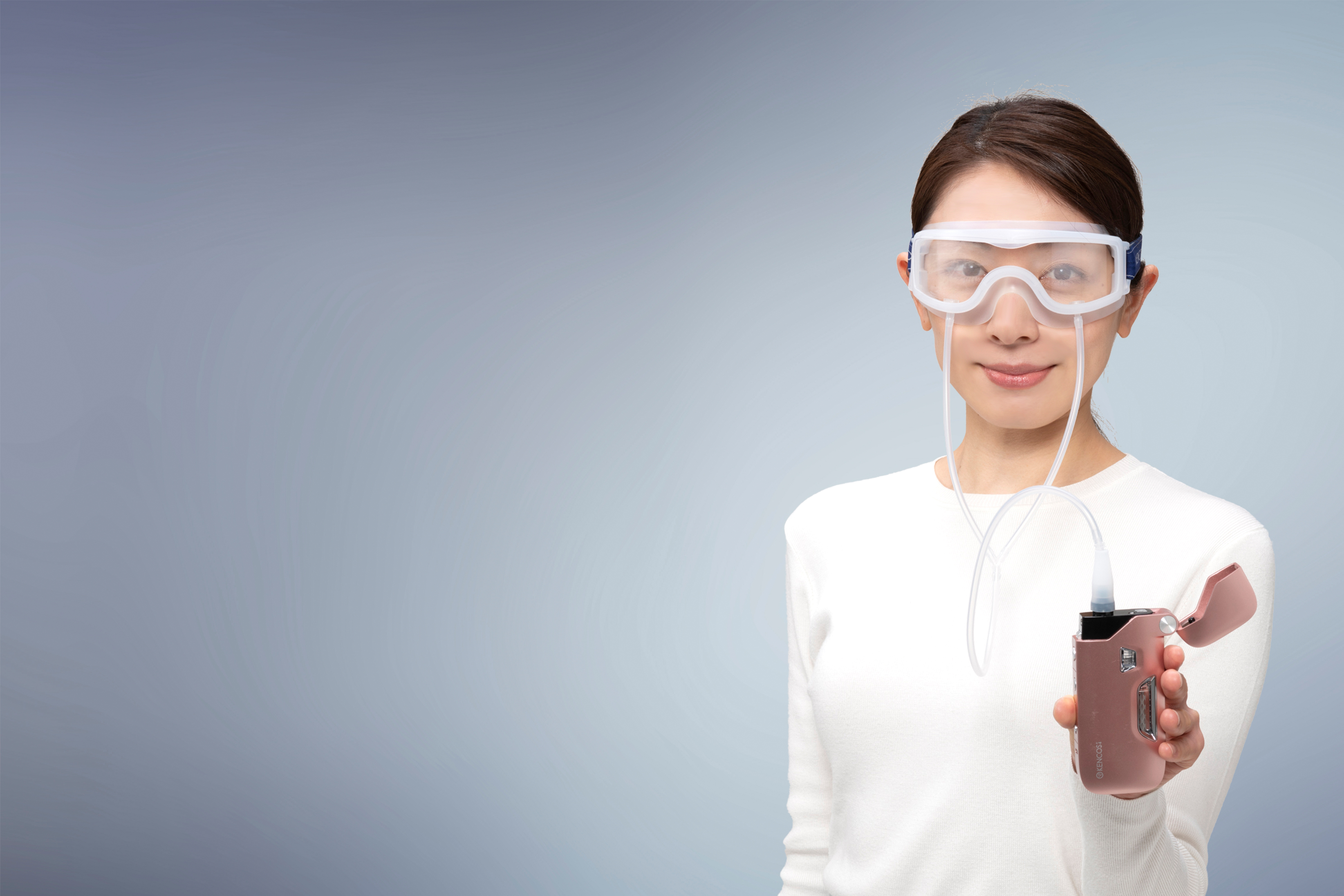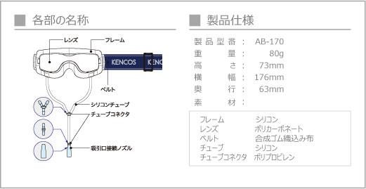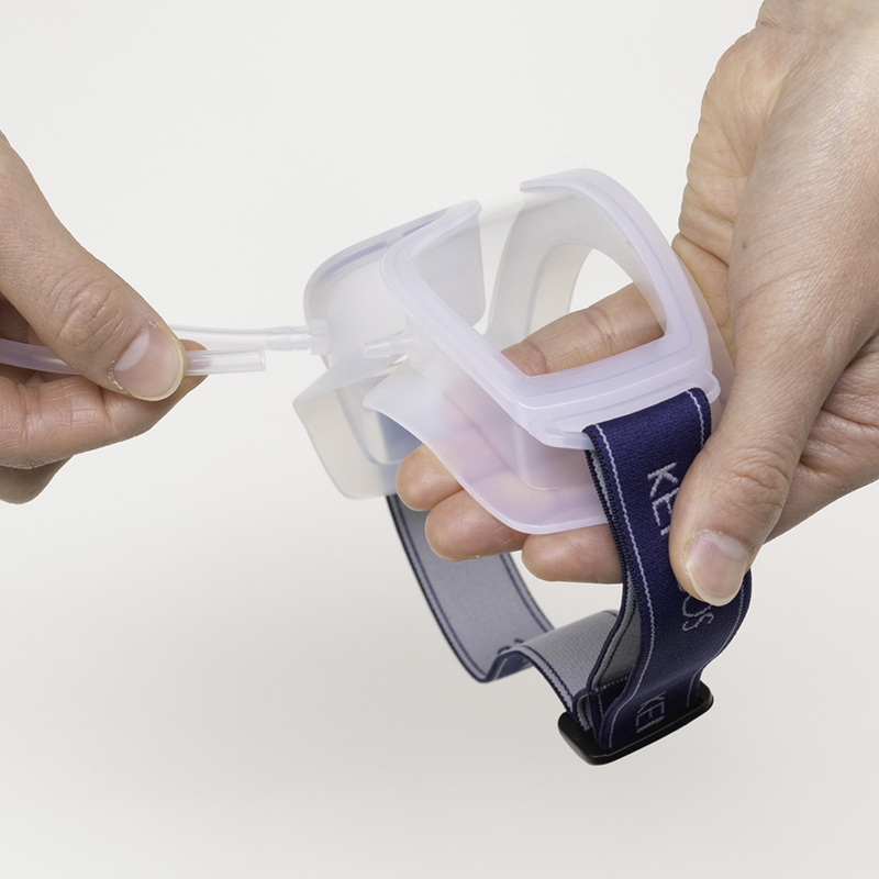 使い方は簡単、ケンコス本体にゴーグルをチューブで繋ぐだけ。
